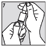 Pressione uma das narinas com o dedo indicador e na outra introduza a ponta do aplicador, pressionando o aplicador o número de vezes indicado pelo seu médico conforme indicado na figura acima.