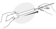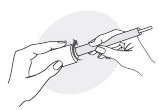- Puxe o êmbolo29 até o final do curso e em seguida aperte delicadamente a base da bisnaga de maneira a forçar a entrada do creme no aplicador, preenchendo todo seu espaço vazio.