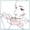 Sempre que possível, ficar de pé ou sentar-se em posição vertical quando for utilizar o medicamento. - Leve o dispositivo à boca5 e coloque o bocal entre os lábios;