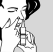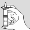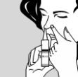 4) Pressione uma das narinas com o dedo indicador e na outra introduza a ponta do aplicador na posição vertical (com o bico para cima), conforme indicado na figura ao lado, pressionando o aplicador o número de vezes indicado pelo seu médico. Não inclinar a cabeça para trás no momento da aplicação.