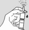 3) Antes de usar Noex pela primeira vez ou após 24 horas, a válvula deve ser carregada. Para isso, pressione o aplicador na posição vertical com os dedos indicador e médio por 8 vezes e descarte o conteúdo das 8 primeiras atomizações. Inicie a administração do produto a partir da 9ª dose de acordo com o procedimento descrito no item 4.