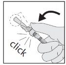 - Após aplicação, empurre o dispositivo azul com o dedo.