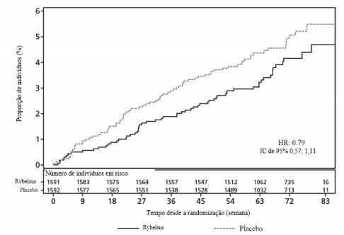 A eficácia de Rybelsus não foi afetada pela idade, sexo, raça, etnia, peso corporal, IMC (Índice de Massa Corporal), duração do diabetes, doença gastrointestinal superior e nível de função renal no período basal.