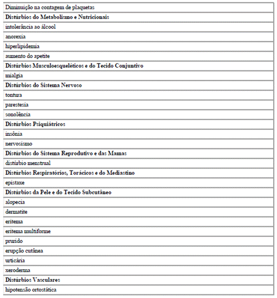 Distúrbios da Pele20 e do Tecido Subcutâneo21: pustulose exantemática aguda generalizada, fotosensibilidade;