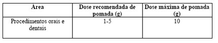Em odontologia deve-se secar a mucosa4 antes da aplicação. Espere 0,5-5 minutos para a ação anestésica tornar-se efetiva.