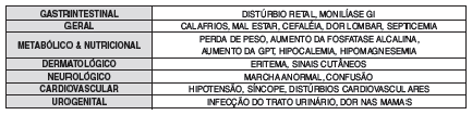 TABELA 5. EVENTOS ADVERSOS GRAUS 1 A 4 NCI RELACIONADOS À DROGA OBSERVADOS EM MENOS DE 1% DOS PACIENTES NOS ESTUDOS CLÍNICOS: