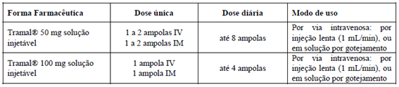 Em caso de dor grave, se a necessidade for maior, uma dose maior de Tramal® (100 mg de tramadol) pode ser considerada para dose inicial, a critério médico.