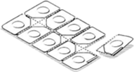 Cada blíster contém comprimidos acondicionados individualmente, separados por pequenas perfurações. Destaque um pedaço do blíster contendo um comprimido ao longo das linhas picotadas.